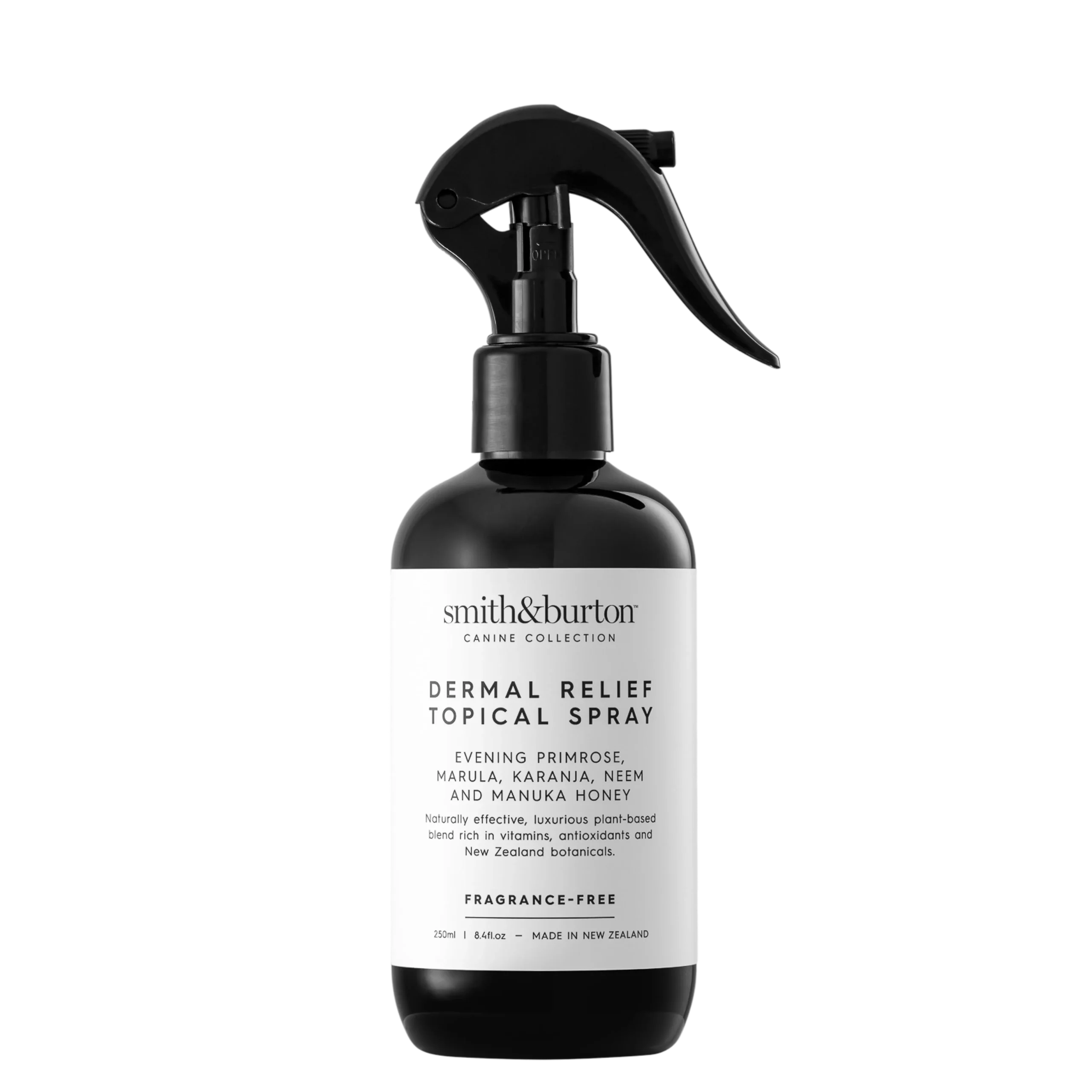 Exploitant le pouvoir reconnu de « l’or liquide » de la Nouvelle-Zélande, le miel de Manuka et les plantes indigènes de Nouvelle-Zélande Kawakawa et Poroporo sont connus pour leurs propriétés antibactériennes naturelles, apaisantes et réparatrices de la peau qui peuvent aider à calmer, réparer, protéger et renouveler la peau et le pelage des chiens. L’eau de Manuka, célèbre de par ses bienfaits pour la santé, est naturellement apaisante et astringente pour aider au renouvellement cellulaire.